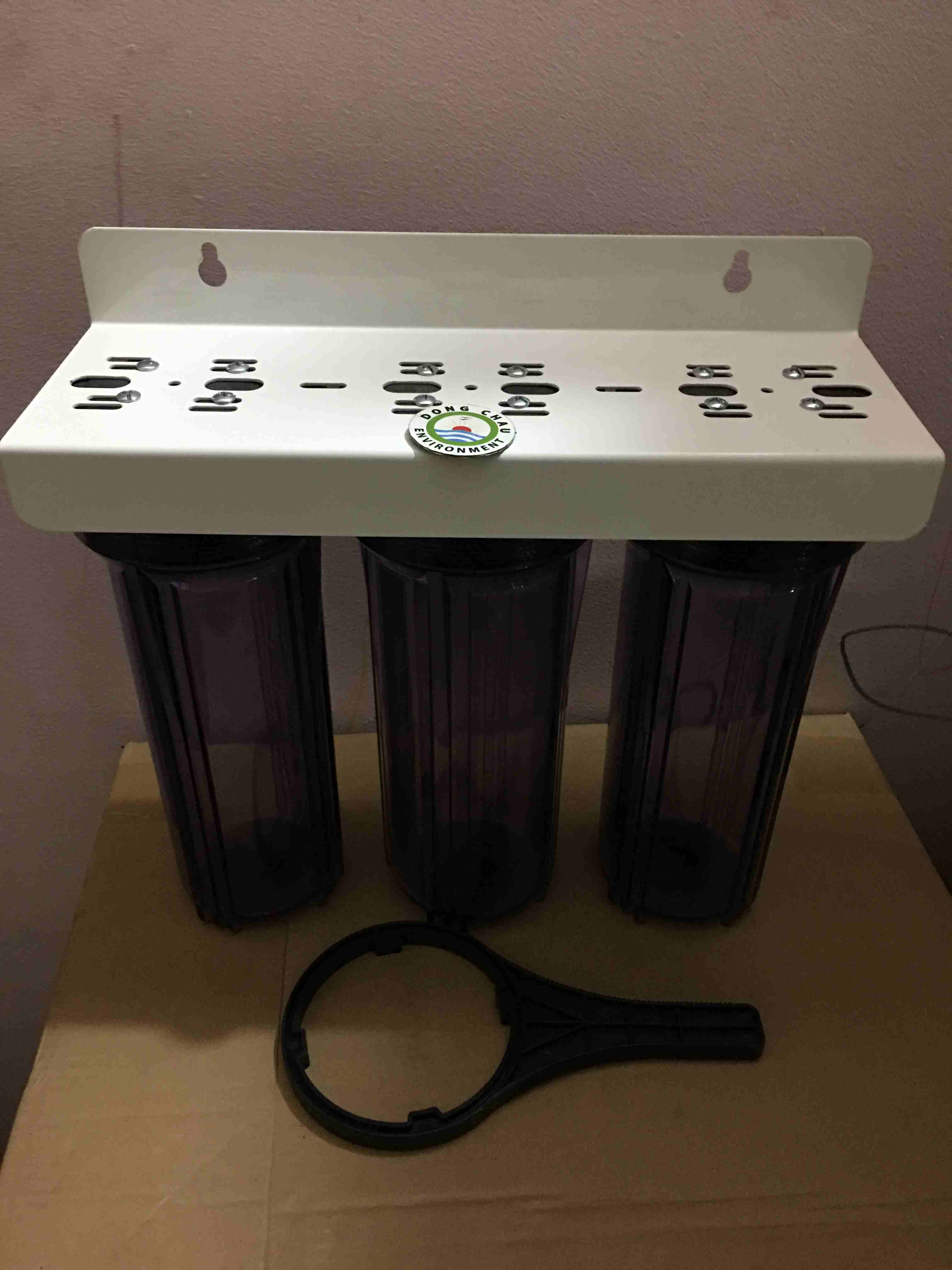 Bộ 3 cốc trong lọc nước gia đình có thể chứa một lõi lọc dài 250 hoặc 500 mm.